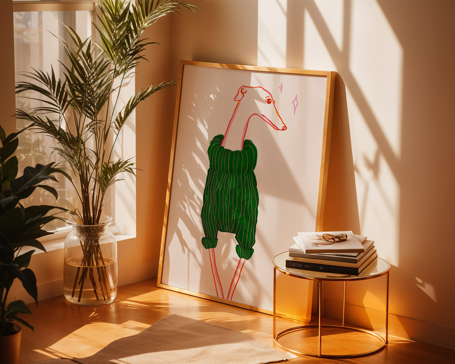 I love to draw noodle dogs because they’re painfully relatable. Greyhounds and whippets are awkward, elegant, slightly anxious, and never quite fitting the room. Which is probably why they feel familiar.