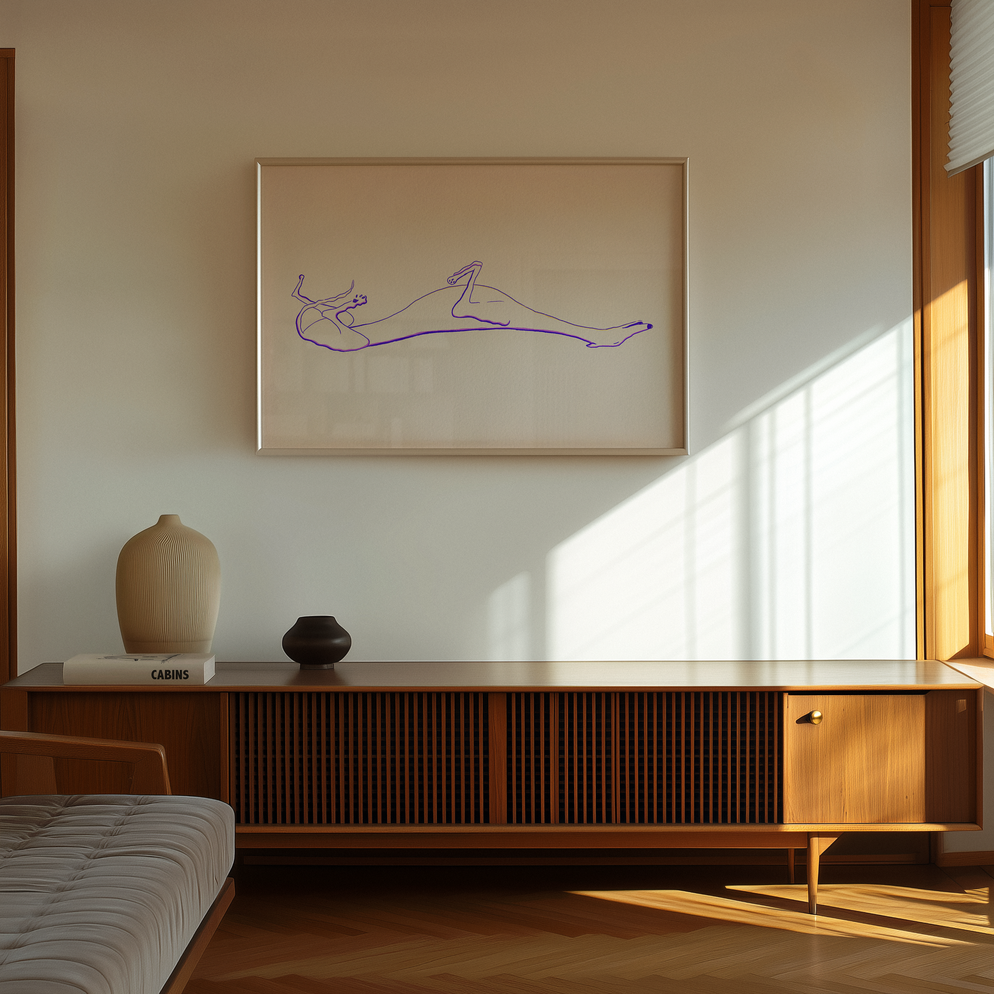 A horizontal art print inspired by roaching. That very specific position noodle dogs take when they’re fully relaxed, slightly exposed, and completely done with the day.