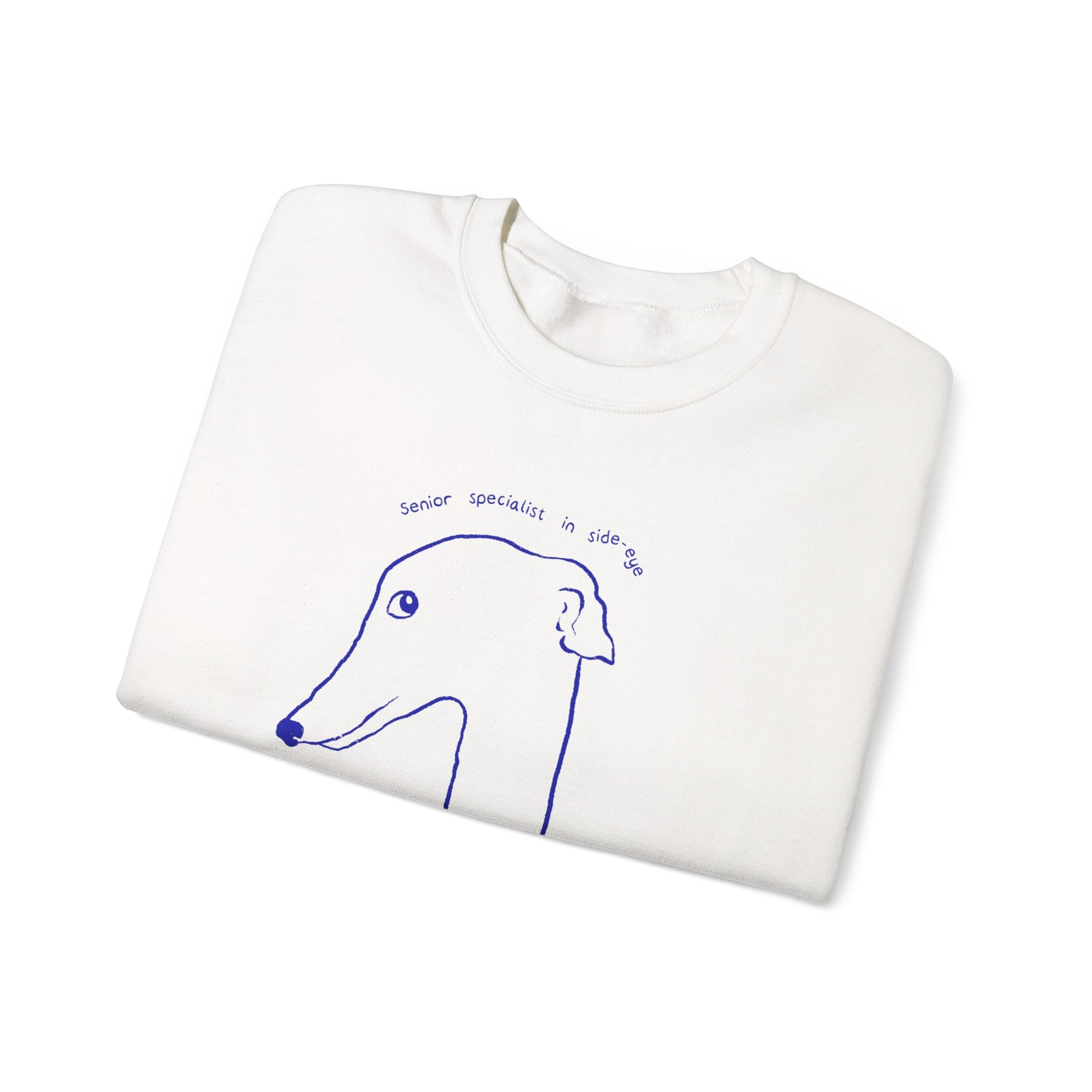 This sweatshirt features a greyhound, senior specialist in side eye, fully trained to handle unnecessary human energy so you don’t have to. Awkward comments, strange vibes, pointless interactions. Handled. You stay calm. The dog does the judging.
